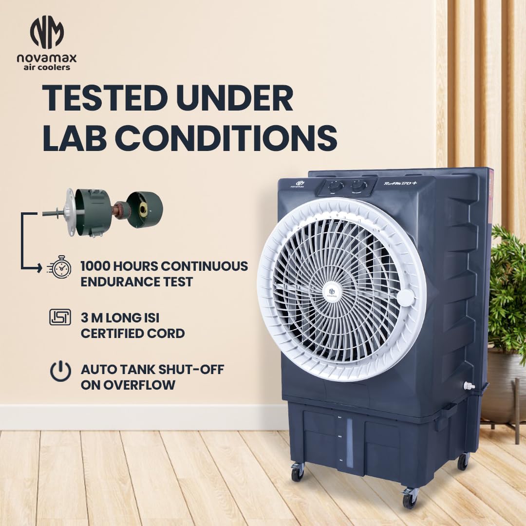 - PRODUCT: Novamax’s Rambo Plus 100 Litre Air Cooler, Specially Designed For Heavy-Duty & High-Performance With 3 Way Speed Settings For Air Speed Control Perfectly Made For Indoor/Outdoor/Residential/Commercial Usage.